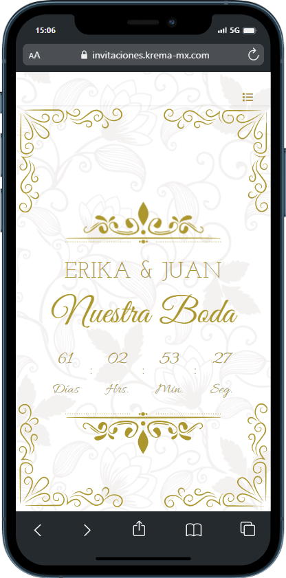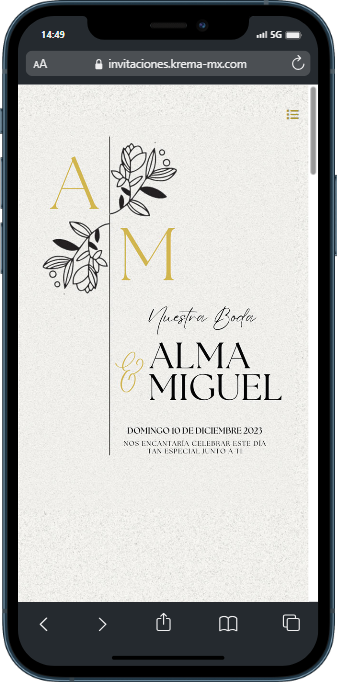 Invitaciones digitales elegantes, interactivas y personalizadas con todo lo necesario para sorprender a tus invitados: RSVP automático, galería QR, música, y más. Vive la experiencia KREMA.